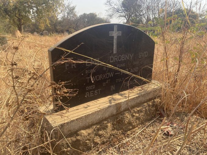 „Nekropolia w Kadomie położona jest niedaleko szpitala i nosi nazwę „Old Cemetery”. Znajduje się na niej polska kwatera o powierzchni 42,21 m². Zawiera ona osiem polskich nagrobków. Ciała Polaków zostały ekshumowane 20 stycznia 1970 r. z cmentarza, który znajdował się nieopodal polskiego osiedla Gatooma . Dzisiaj miejscowość ta nosi nazwę Ngezi i w dalszym ciągu istnieją tam zabudowania w których mieszkali Polacy w latach 40. XX w. Wraz z ciałami na cmentarz w Kadomie zostały przeniesione fragmenty polskich nagrobków: krzyże z nazwiskami. Grób zmarłego ks. Emila Drobnego został postawiony na nowo. Nazwiska osób pochowanych wraz z ich danymi w większości są zatarte i nieczytelne.”