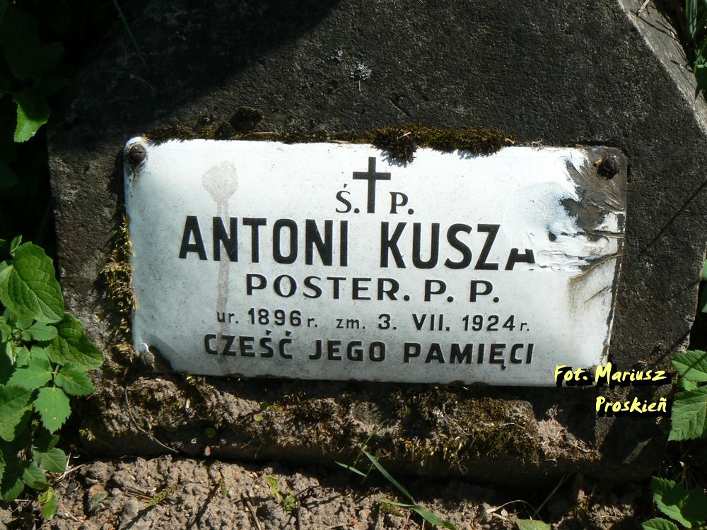 - Ś. + P. ANTONI KUSZA / POSTER. P.P. / UR. 1896 R. / ZM. 3.VII.1924 R. / CZEŚĆ JEGO PAMIĘCI