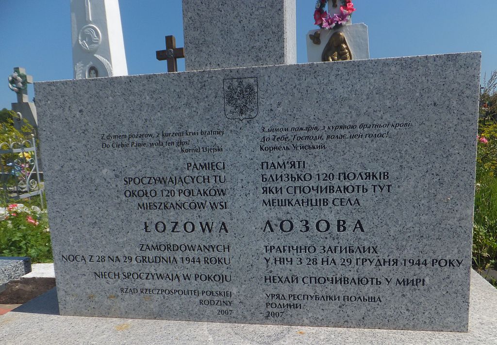 W Łozowej położonej w dawnym powiecie tarnopolskim województwa tarnopolskiego UPA dokonało zbrodni na ludności polskiej w nocy z 28.12.1944. We wsi nie działała samoobrona jednak mieszkańcy, w trakcie ataku próbowali się bronić używając nielegalnie posiadanej broni. Zbrodnia przebiegała według typowego schematu działań UPA. Polska ludność mordowana była za pomocą narzędzi rolnych, siekier, noży i broni palnej. Oprócz oddziałów UPA wieś była plądrowana przez rabusiów, a następnie zagrody były palone. Po kilku godzinach do Łozowej przyjechał radziecki pociąg pancerny, który oświetlił wieś rakietami i otworzył ogień do upowców; jednocześnie ze Zborowa nadciągnął oddział radzieckich żołnierzy. Spowodowało to zakończenie ataku UPA. Według różnych źródeł liczba zabitych waha się pomiędzy 106-131. W Łozowej UPA oprócz Polaków zamordowała również 8 osób narodowości Ukraińskiej. Wszystkie osoby zostały pochowane w zbiorowej mogile na placu przykościelnym.