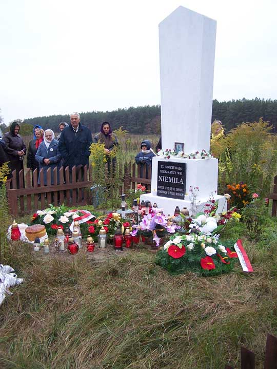 W latach 70. XX w. mogiła została ogrodzona, obok ustawiono obelisk. Na pomniku widniał napis: „Tu pochowanych jest 170 mieszkańców wsi Niemilja rozstrzelanych przez Burżuazyjnych Nacjonalistów Ukraińskich w 1943 roku. Wieczna pamięć”.